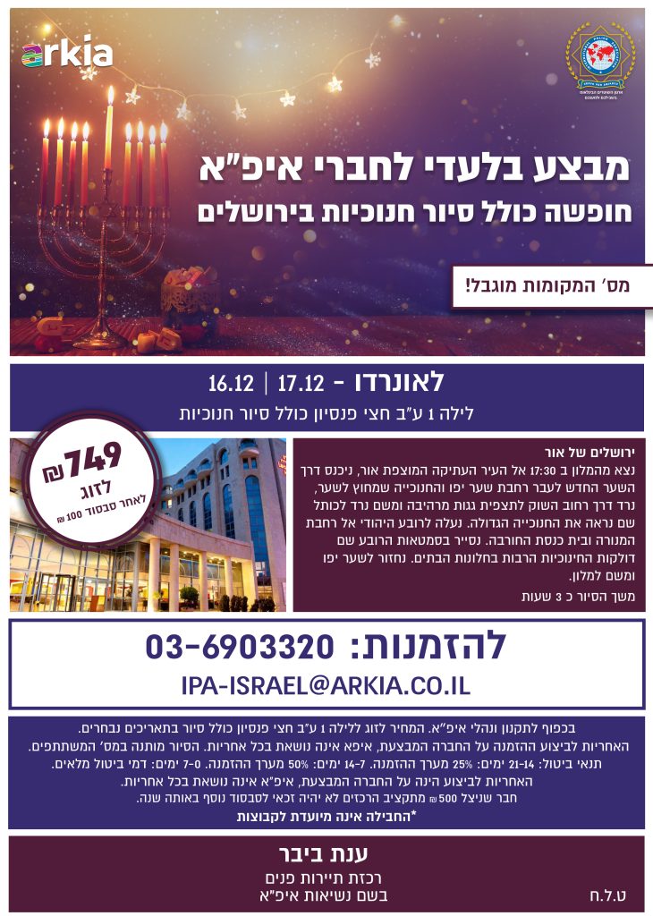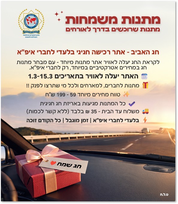 איפ"א ישראל הוא ארגון גדול ואת עיקר הפעילות מובילים יושבי ראש הסניפים, סדירים וגמלאים ביחד עם חברי נשיאות איפ"א וצוות המנגנון. באתר של איפ"א תוכלו למצוא ולהתעדכן בהטבות, שירותים, פרוייקטים, תיירות חוץ ופנים, אירוח, תרבות, ספורט, שיתופי פעולה ועוד נושאים רבים, שאנו מאפשרים לחברינו להשתתף בהם ברחבי הארץ ובעולם.